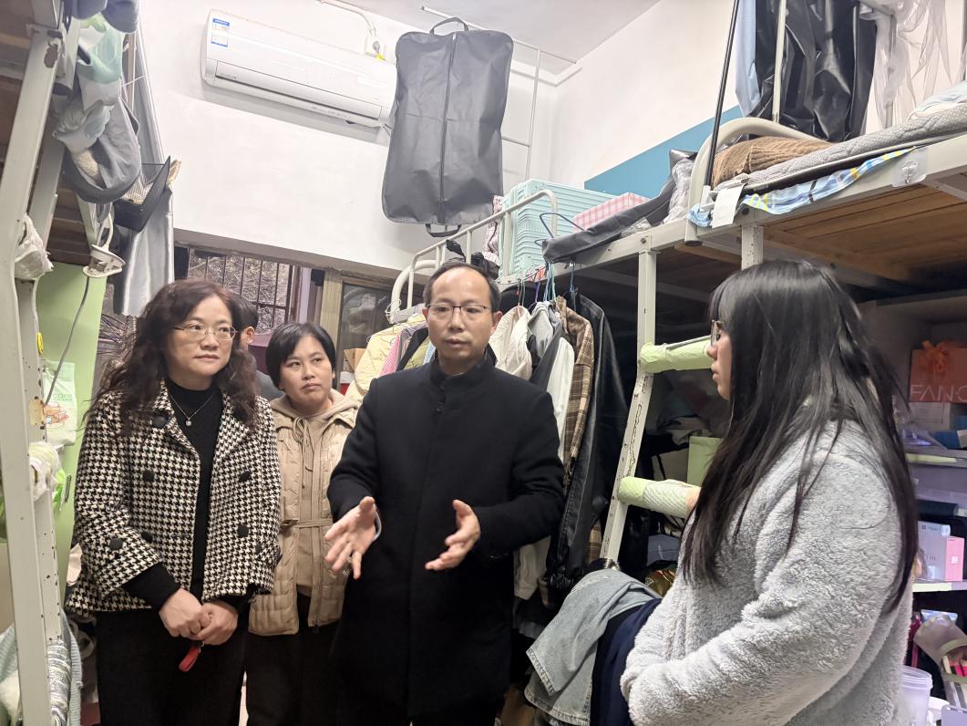 为进一步加强学生公寓管理,消除安全隐患,营造整洁、安全、舒适的生活学习环境,根据学校学生工作部统一部署,中医药科学院于2025年12月29日组织开展了本院学生公寓卫生安全专项自查活动。学院高度重视此次检查,由执行院长梅志刚、副院长覃丽、科教科科长李玲带队,联合学生导师代表张秀丽、刘建军、余静波及学生干部张琪瑶、冷思源、胡奕洋共同组成检查小组,对学院所属17间学生宿舍进行了全面细致的检查。